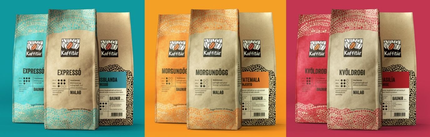 Allt kaffið okkar er flokkað í 4 litflokka eftir bragðupplifun; appelsínugult, bleikt, blátt og fjólublátt.